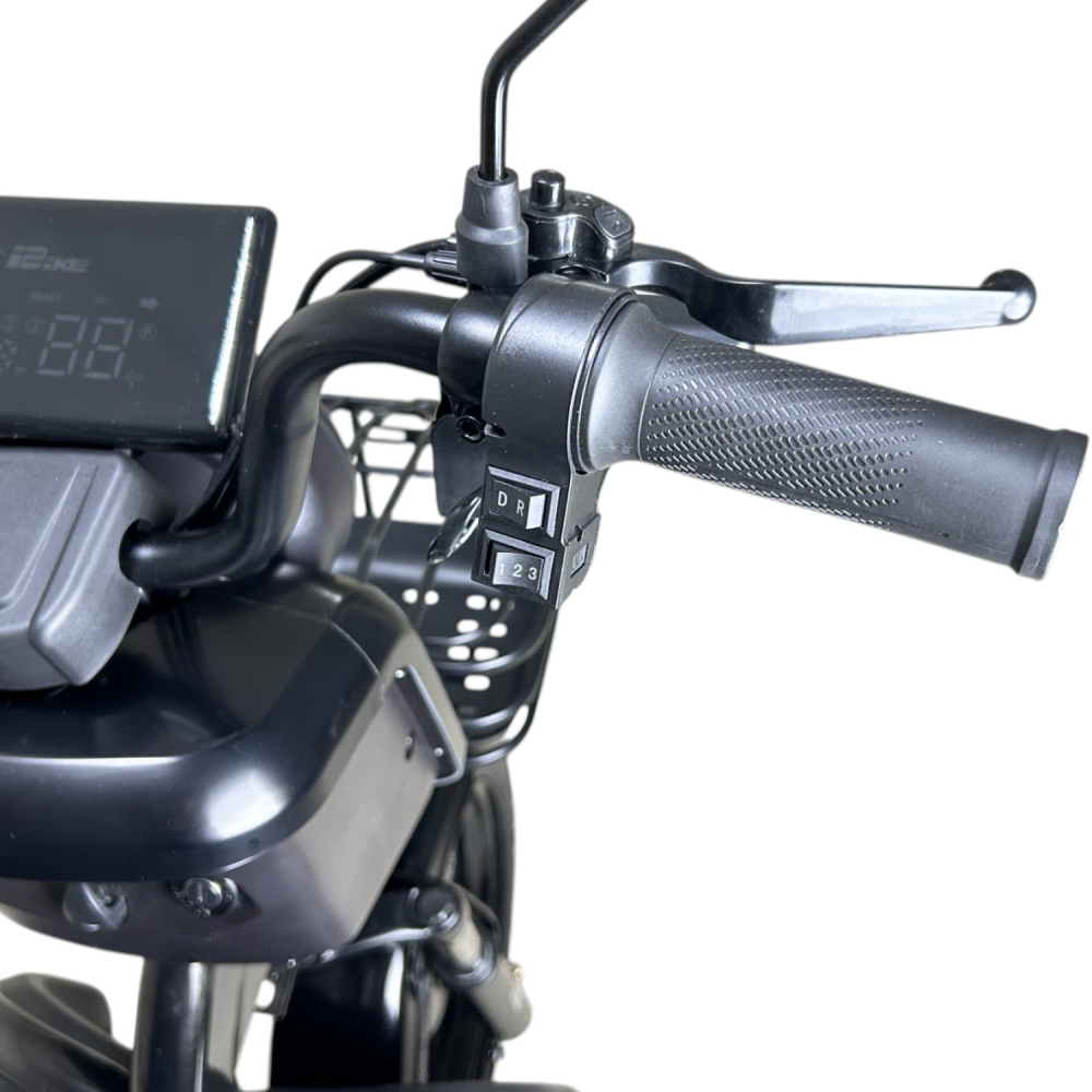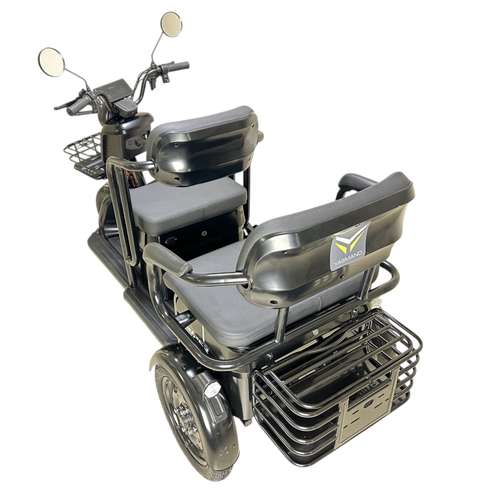 Yasmand R12 — трёхколёсный электротрицикл с задним приводом и мотором 1200 Вт. Он развивает скорость до 50 км/ч и обеспечивает комфортное передвижение по городу и на ровных загородных дорогах.