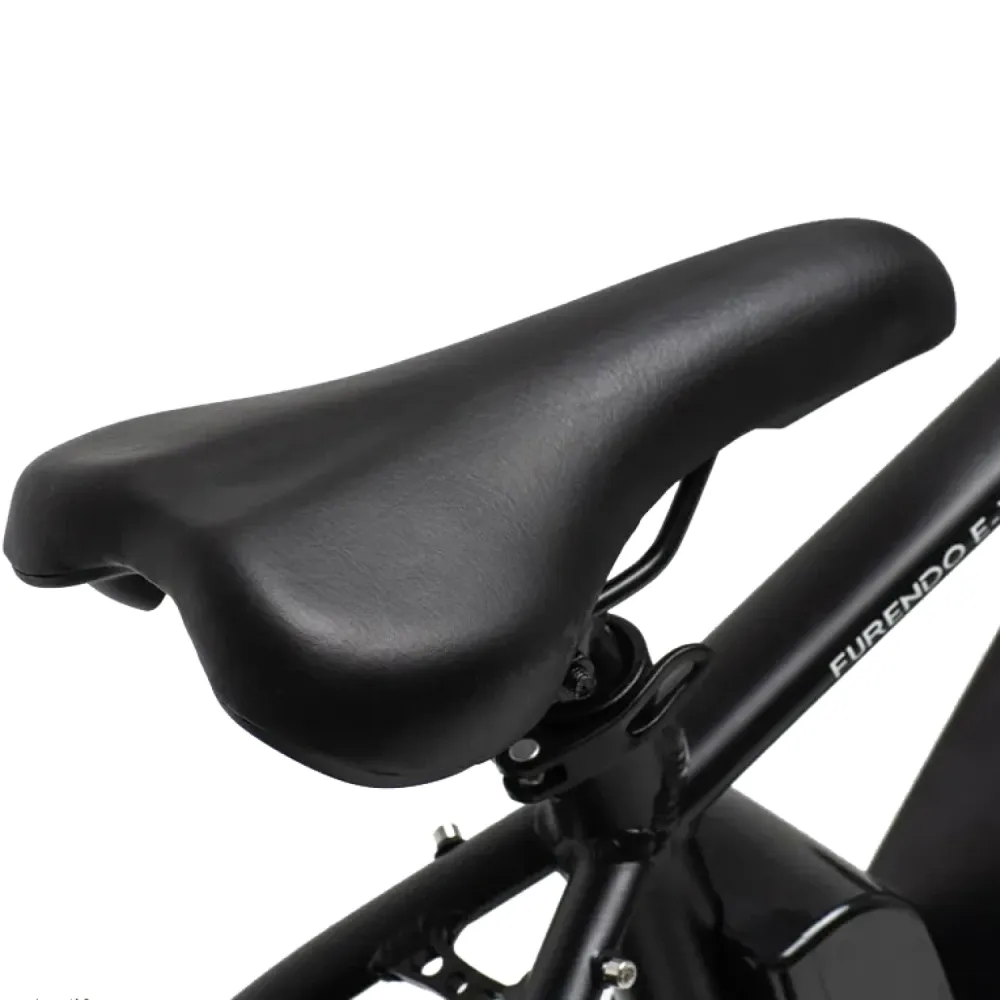 Электровелосипед Furendo E-X5 350 GT черный – изготовлен в классическом дизайне. Выглядит круто. Цельная высокая рама не вызывает дискомфорта даже у представительниц прекрасного пола. При массе 23 кг велогибрид рассчитан на грузоподъемность до 110 кг. С такими параметрами пользоваться байком может разновозрастная категория райдеров, в том числе и подростки.