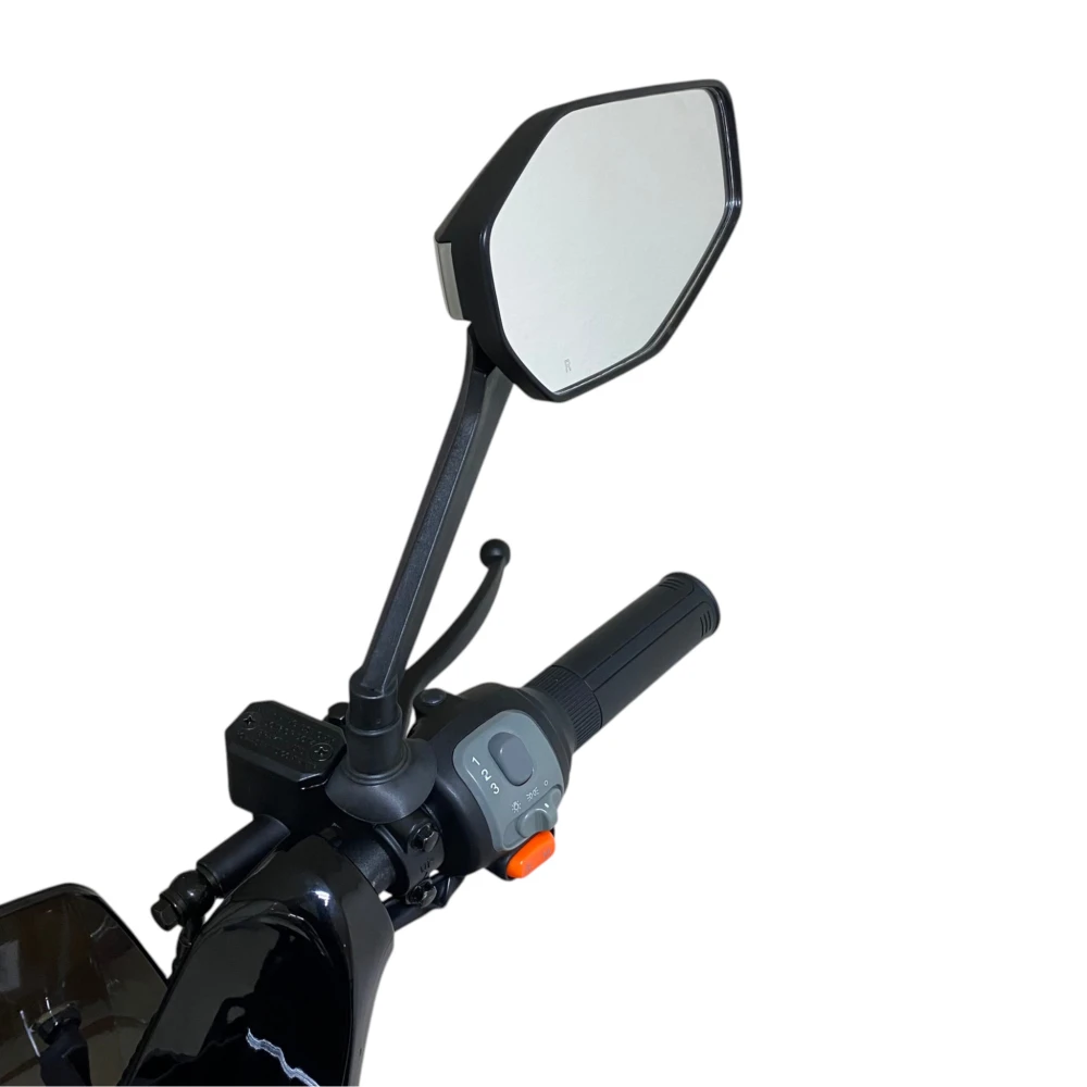 • комплектация «под ключ»: фары, поворотники, зеркала, крылья, кофр, защитное стекло — в отличие от большинства бюджетных электровелосипедов, где многие элементы приходится докупать.