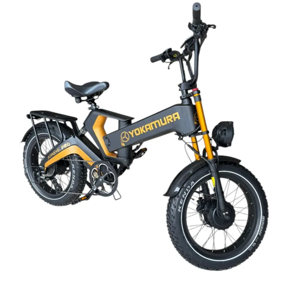 Мощь, стиль и премиальное качество — всё это воплощает Yokamura Apache PRO, электровелосипед, созданный для тех, кто хочет больше, чем просто транспорт. Эксклюзивная золотая рама из магниевого сплава не только выглядит эффектно, но и отличается прочностью и лёгкостью.