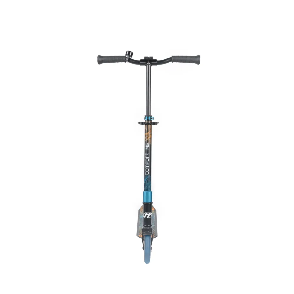 Рулевая часть регулируется в пределах 72-94 см, имеет 3 фиксированные позиции. Для азарта и безопасности самокат оснащен звонком.