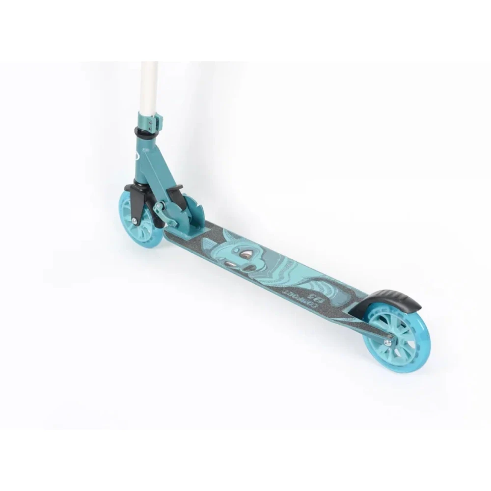 Из преимущественных характеристик, важных для ребенка и эксплуатации техники производитель выделяет прочную широкую деку, размеры которой позволяют установить 2 стопы одновременно. Простая система складывания доступна даже ребенку. Высота рулевой части регулируется под рост ездока, параметры регулировки колеблются в пределах 64-83см.