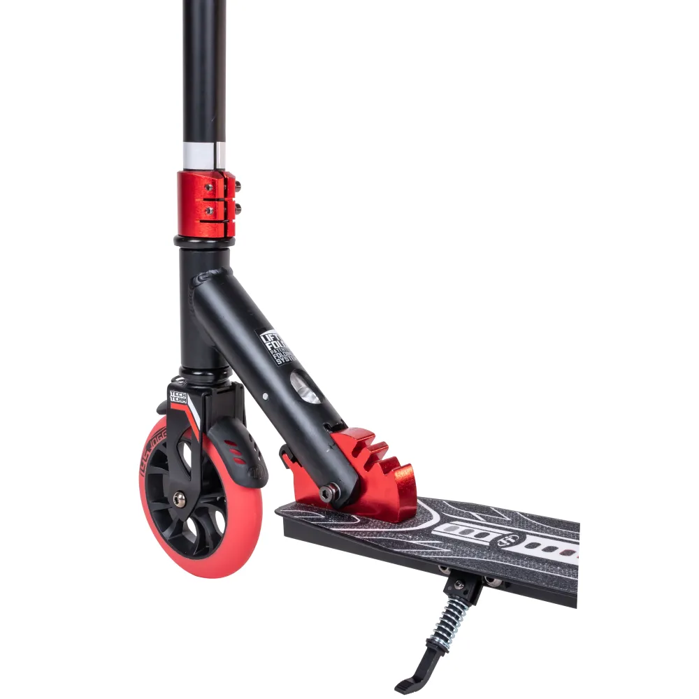 Самокат Tech Team JOGGER 145 в черно-красном цвете – шикарный вариант техники по приемлемой стоимости. Купить хит сезона 2022 выгодно предлагает наш интернет-магазин. Самокат предназначен для пользователей от 5-летнего возраста и старше. Имеет массу 3,75 кг, грузоподъемность – до 50 кг. Модель – трансформирующаяся, практичная в транспортировке. На сегодняшний день считается лучшим вариантом городской техники.