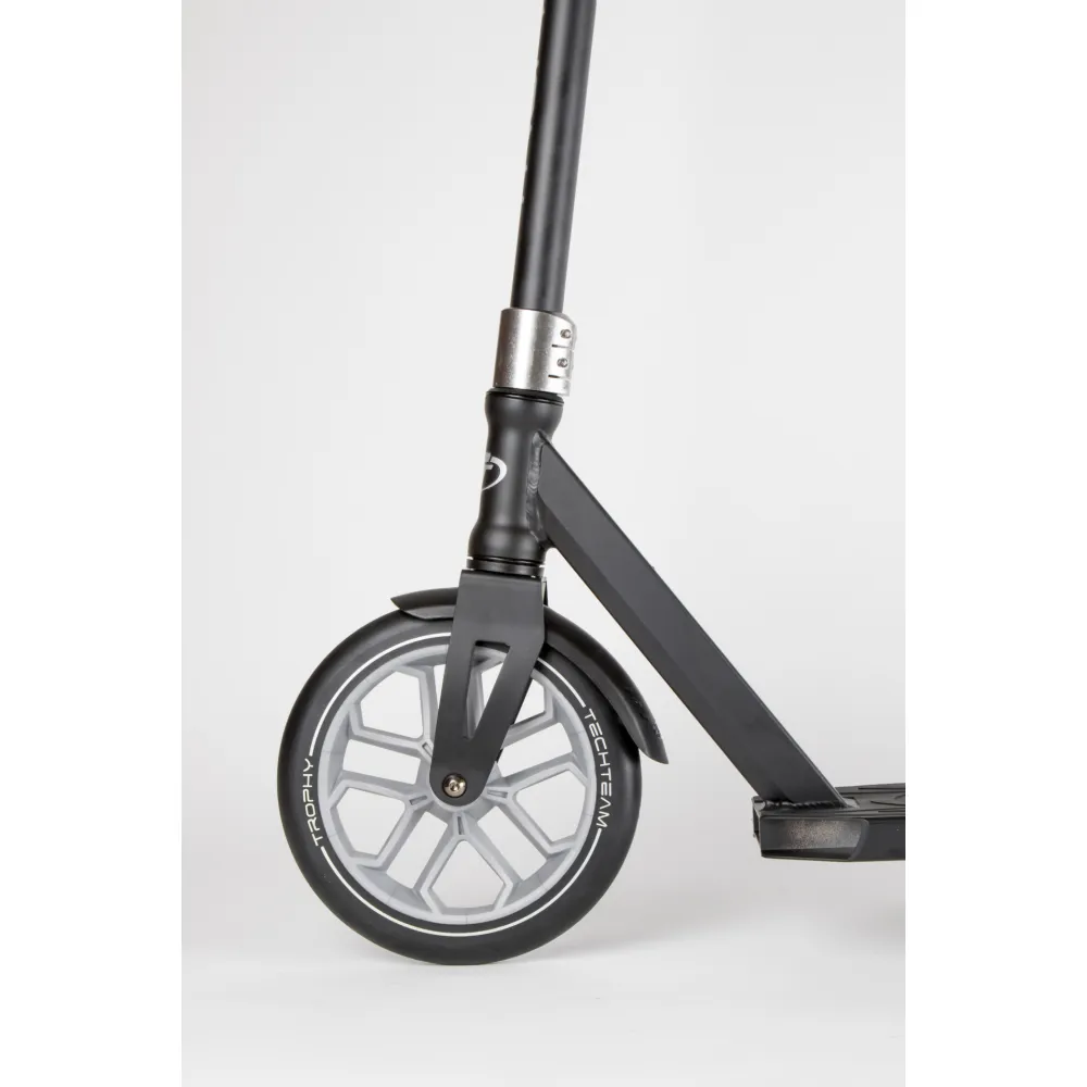 Черно-серый САМОКАТ TROPHY COMPLETE – лучший подарок на мероприятие разного рода. Хит продаж сезона 2021. Завоевал признание пользователей отличными скоростными характеристиками, простотой управления и качественностью технической части.