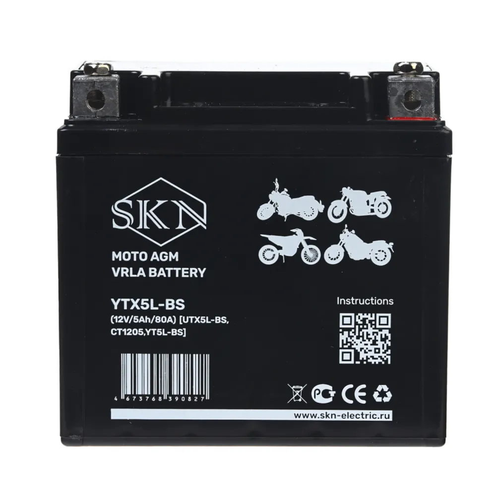 Аккумулятор стартерный для мототехники SKN YTX5L-BS (12V/5Ah/80A) [UTX5L-BS, CT1205, YT5L-BS]