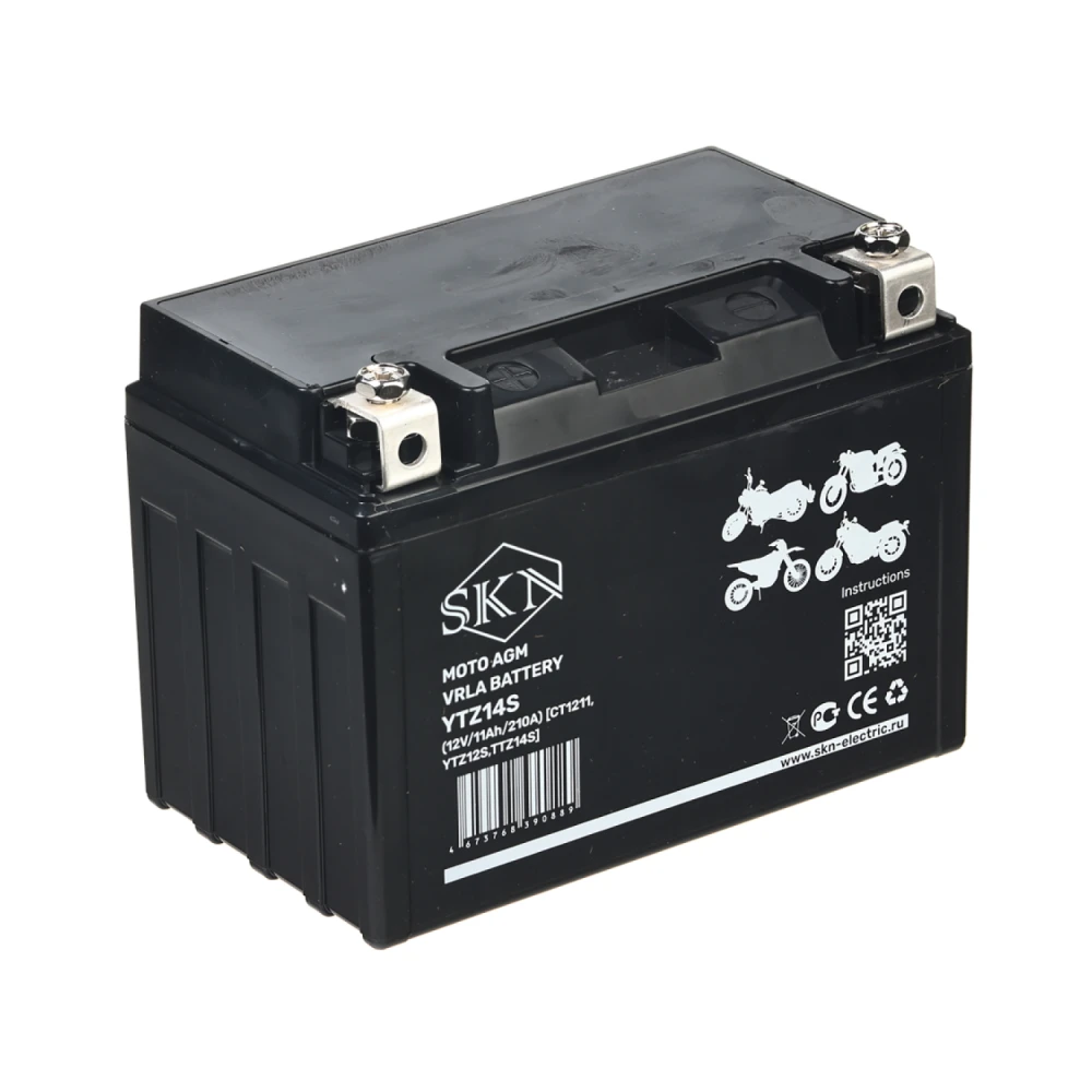 Аккумулятор стартерный для мототехники SKN YTZ14S (12V/11Ah/210A) [CT 1211, YTZ12S,TTZ14S]