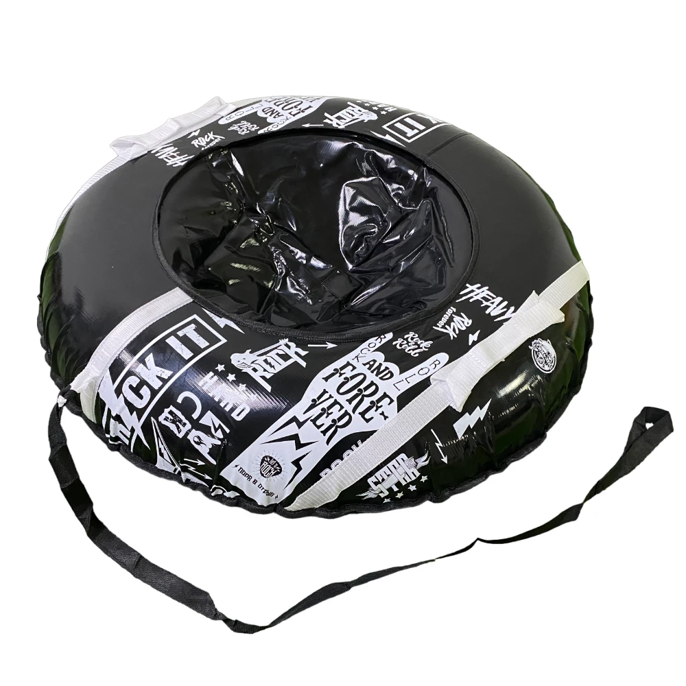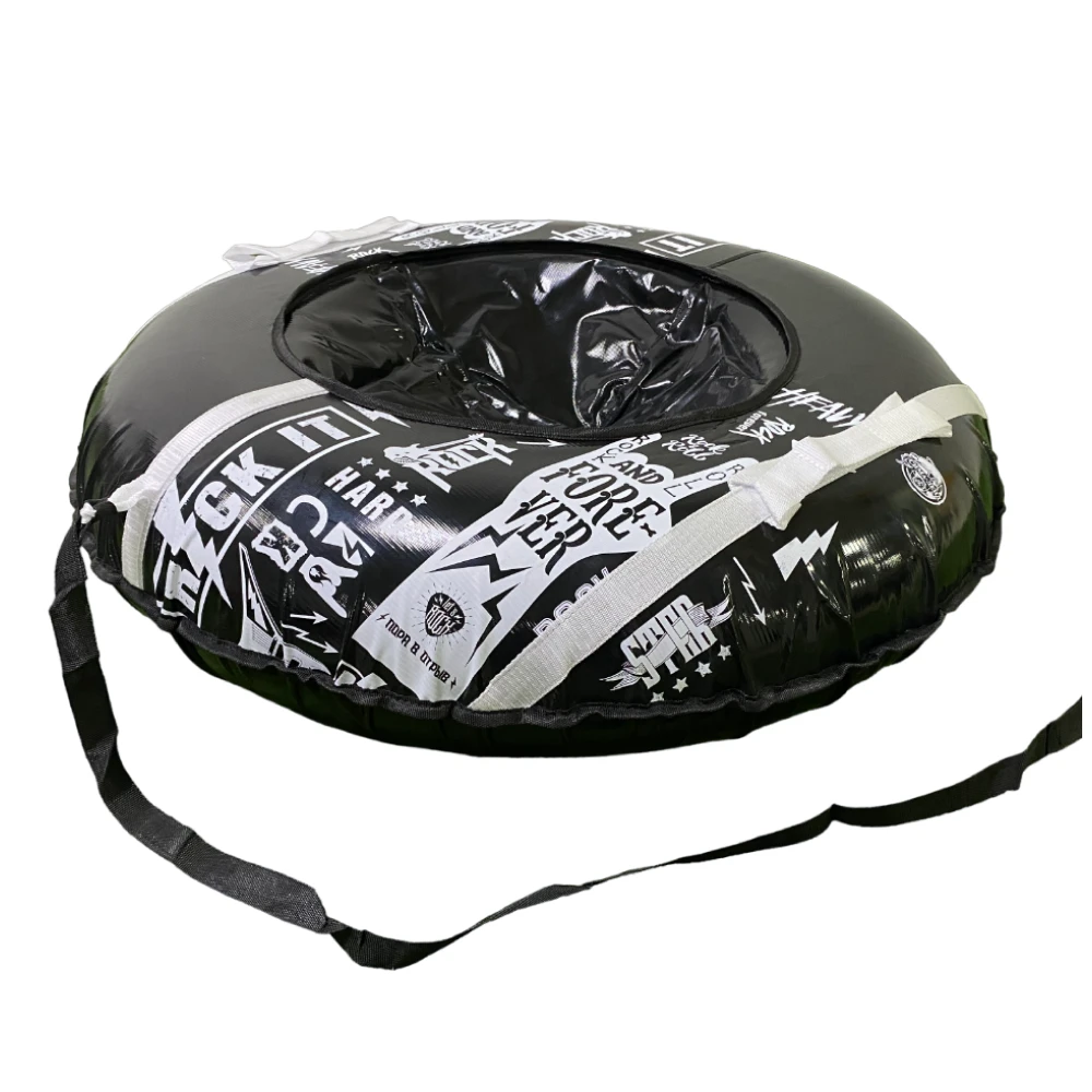 Тюбинг Rock 93см - это уникальное и оригинальное развлечение для всех любителей экстремальных ощущений. С его диаметром в 93 см и рисунком в рокерском черно-белом стиле, этот тюбинг обещает незабываемые приключения на снегу.